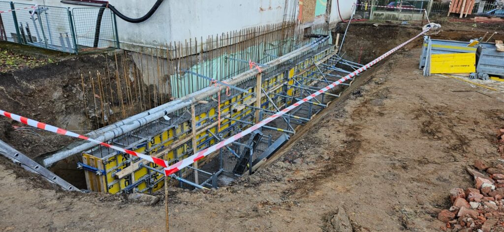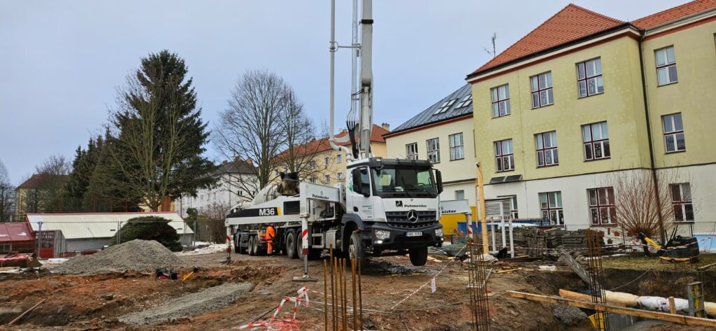 Probíhají základové konstrukce nově vznikající přístavby Základní škola Humpolec. Postavil se stacionární věžový jeřáb a práce na nosné monolitické konstrukci můžou začít naplno.