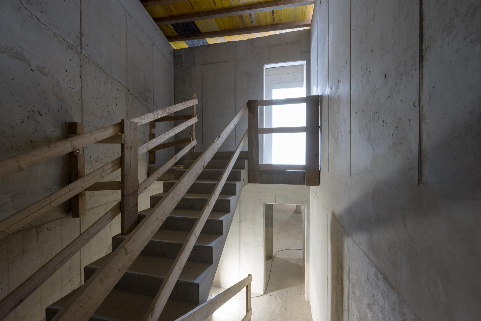včetně dodávky a montáže schodišťových ramen. Konstrukční systém stěnový. K izolaci spodního podlaží byl použit systém bílé vany. Stavba byla pro nás výzvou, protože jediný přístup na staveniště byl průjezdem širokým pouze 2,5 m. Tomu museli být uzpůsobeny použité technologie i zdvihací prostředky